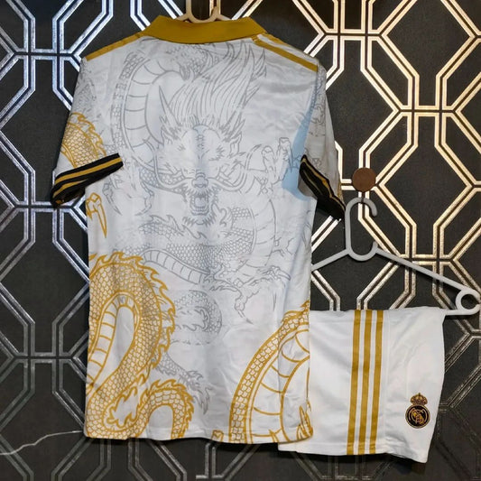 Real Madrid Dragon Edition Golden & White 24-25 Jersey with Shorts