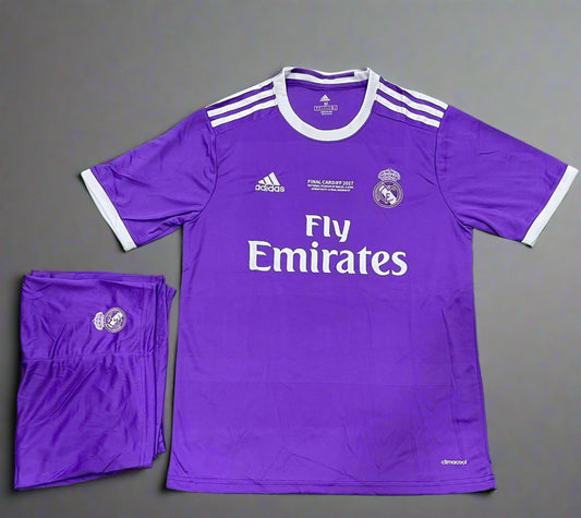 Real Madrid CR7 Final Cardiff 2017 Champions League Retro Home Jersey with Shorts