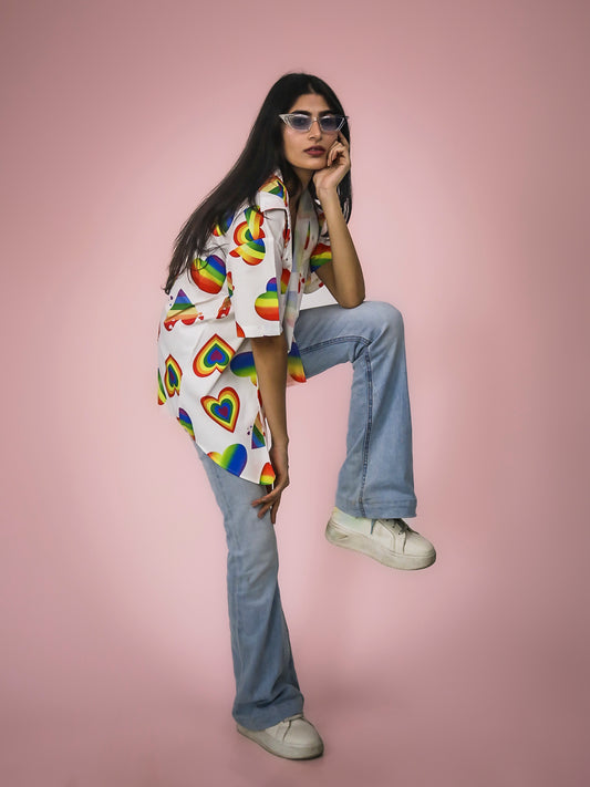 Vibgyor Heart Edition Summer Cool Half Sleeve 100% Rayon Printed Unisex Shirt (White)