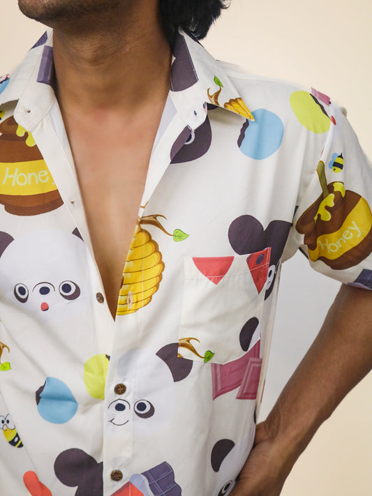 Sweets & Panda Pearl White Limited Edition Summer Cool Half Sleeve 100% Rayon Printed Unisex Shirt
