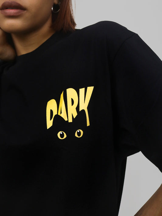 Dark Cat Oversized 100% Cotton Vantablack Printed Unisex T-Shirt