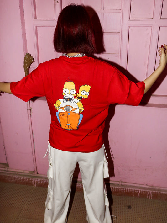 The Simnsobs Oversized 100% Cotton Apple Red Printed Unisex T-Shirt