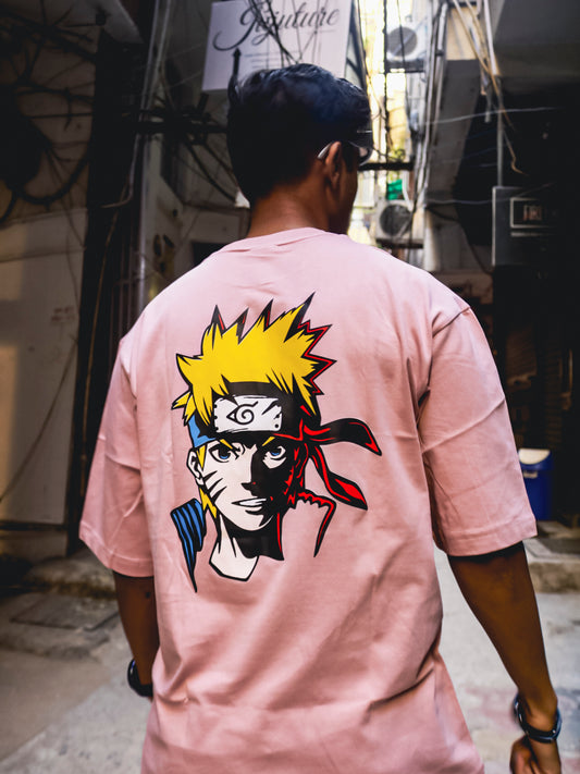 Naruto Oversized 100% Cotton Rose Pink Printed Unisex T-Shirt