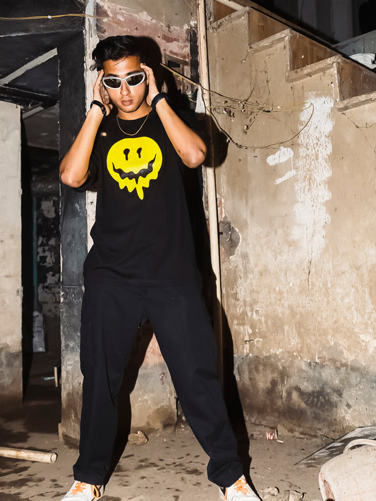 Smiley Oversized 100% Cotton Vantablack Printed Unisex T-Shirt