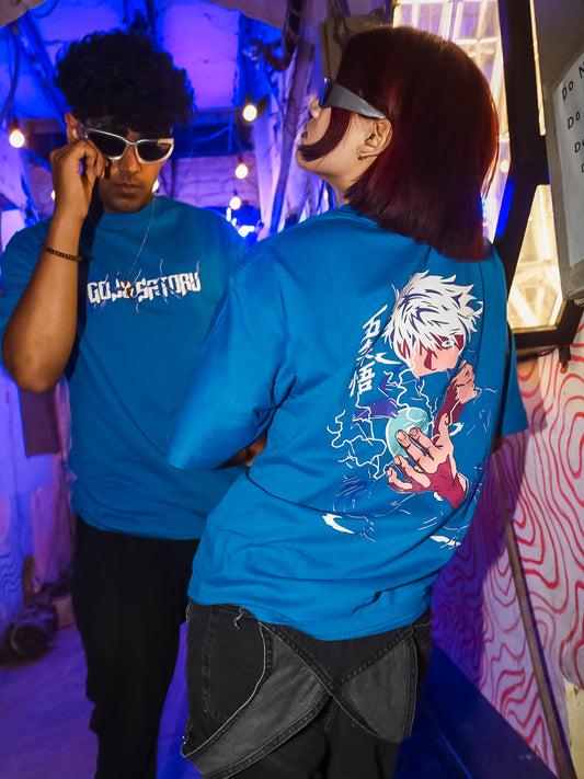 Gojo Satoru Oversized 100% Cotton Azure Blue Printed Unisex T-Shirt