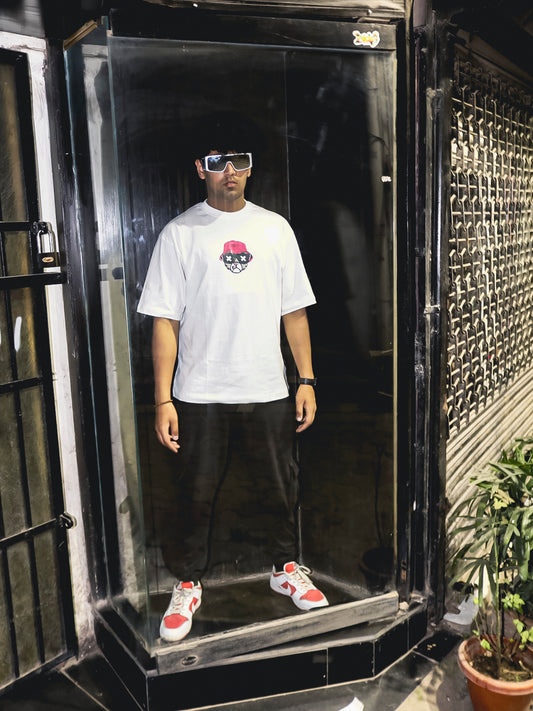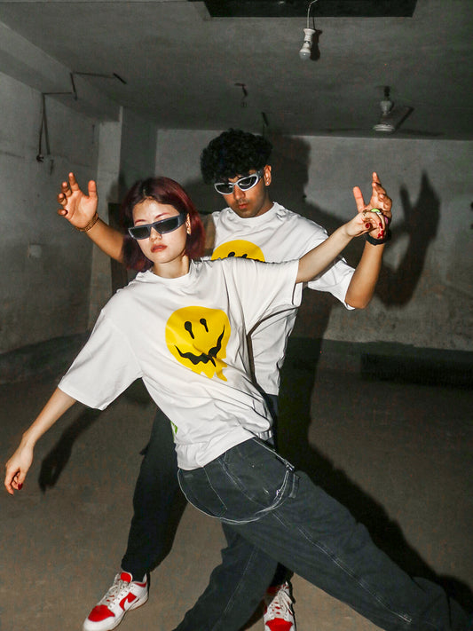 Smiley Oversized 100% Cotton Pearl White Printed Unisex T-Shirt