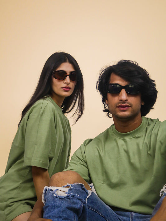 Pastel Green Oversized 100% Cotton Solid Unisex T-Shirt