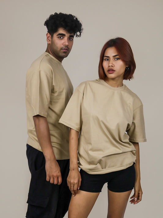 Coco-Brown Oversized 100% Cotton Solid Unisex T-Shirt