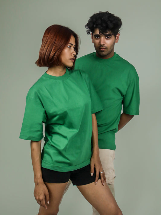 Emerald Green Oversized 100% Cotton Solid Unisex T-Shirt