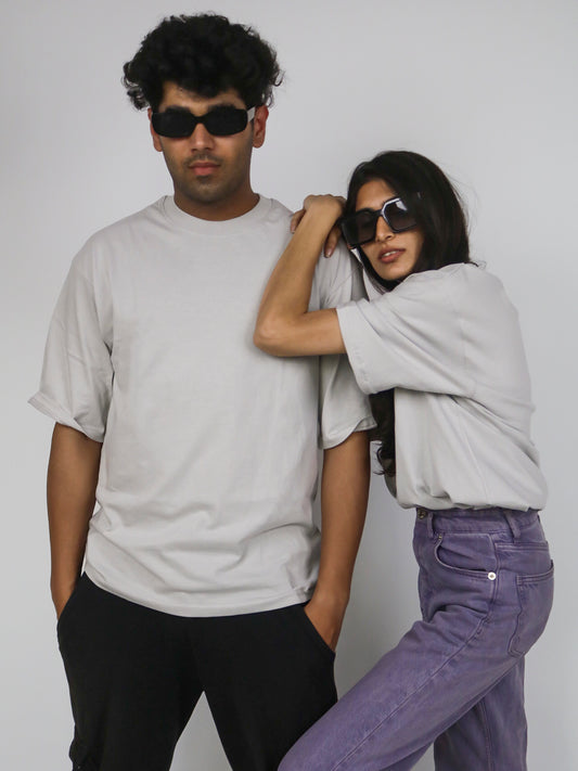 Ash Gray Oversized 100% Cotton Solid Unisex T-Shirt