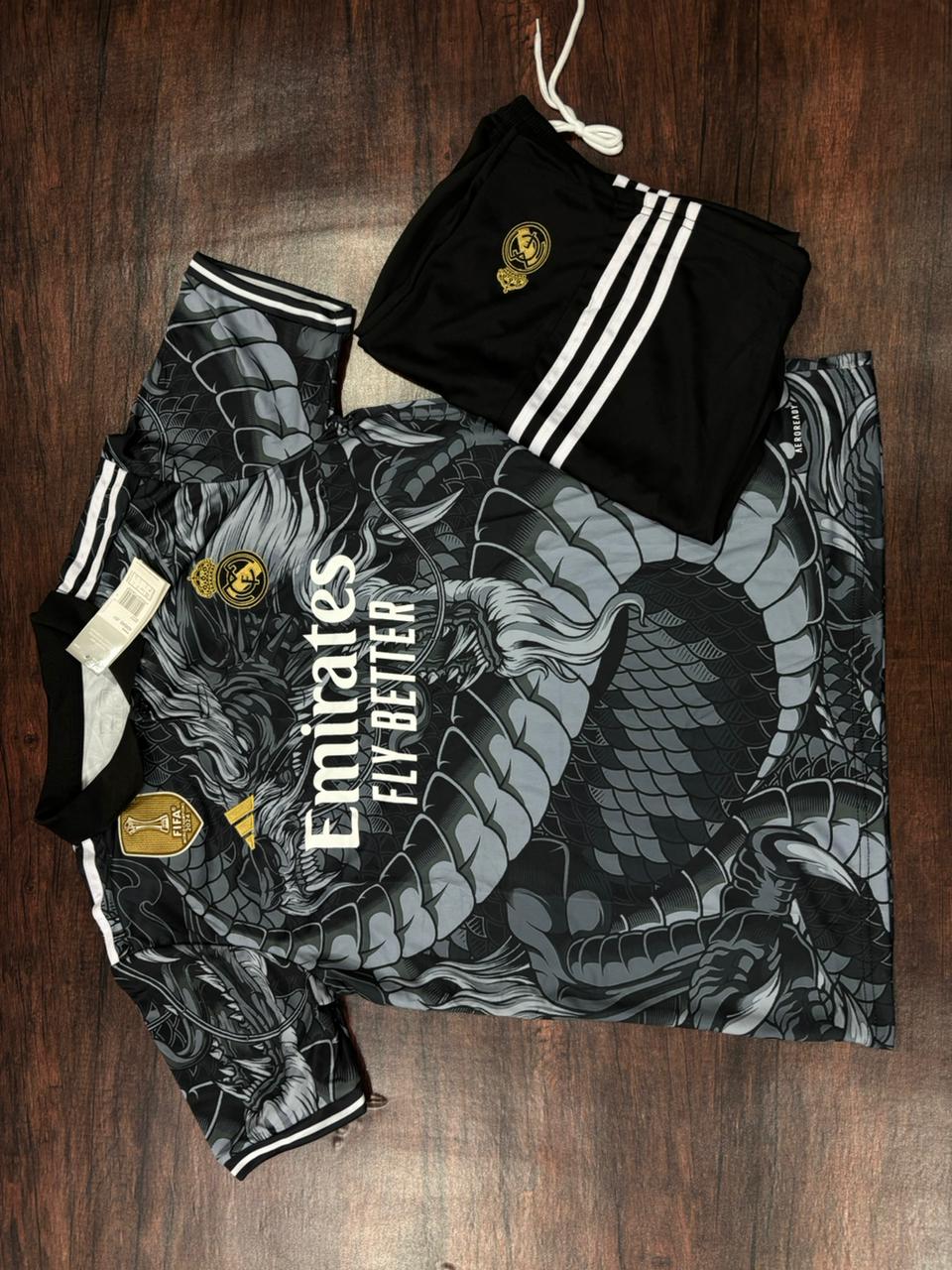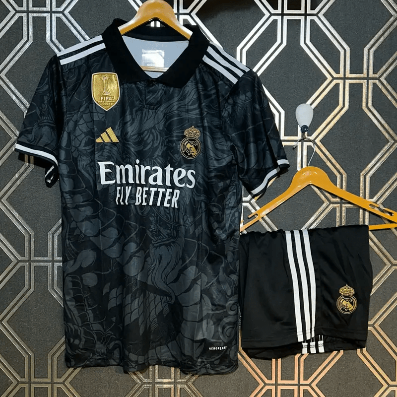 Real Madrid Black Dragon 2024 Edition Jersey with Shorts
